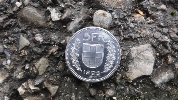 Hier, kurz nach der Holzbrücke und dem verbogenen Metallgeländer nach zu schliessen, vermutlich die Stelle, wo am vergangenen Dienstag ein Drei-Kubikmeter-Felsblock auf den Weg gestürzt ist: