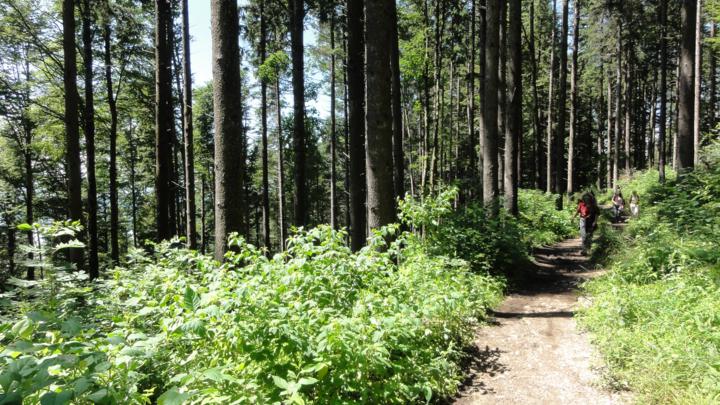 Parallel den Höhenlinien folgend führen mehrere Waldwege Richtung Magglingen: