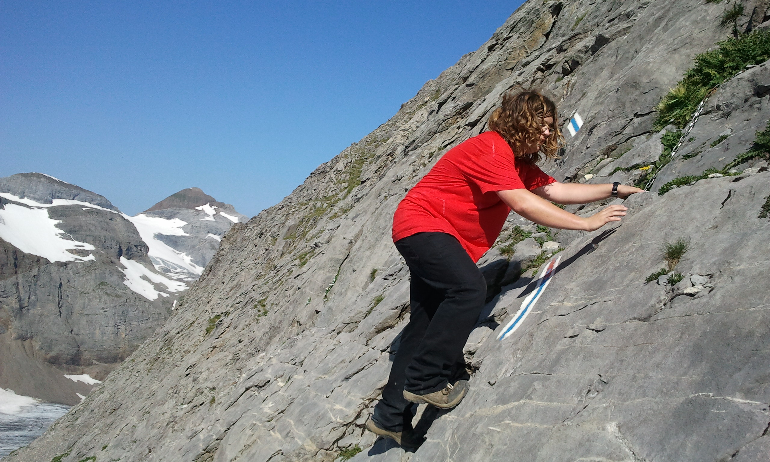 Von der Hangkante "im Lauber" aus (in der Nähe der Gitschenhörelihütte) ist der Weg dann weiss-blau markiert, und er hat es wirklich in sich ;) .