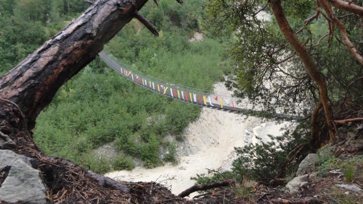 ROUTE: Bahnstation Leuk / Susten (630m) - Illgraben - Bhutan-Hängebrücke über den Illgraben (855m) - Obere Abschlacht (742m) - Untere Abschlacht (725m) - Pfynwald - Rhonekanal - Pfyndenkmal (607m) - Dammweg entlang der Rhone - L'Ermitage (559m) - Forêt de Finges - Parc de Finges (545m) - Sierre (Bahnhof: 533m)