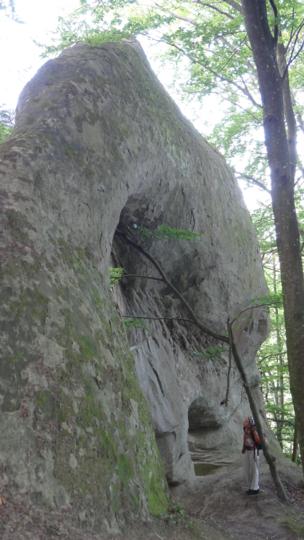 In und auf der bewaldeten Sandsteinfluh hinter dem Gehöft Harnischhuet befinden sich drei interessante Objekte:
