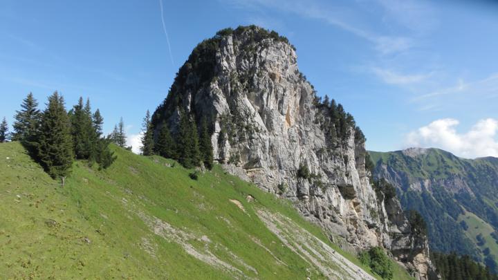 Von Norden her wirkt der Rophaien unscheinbar; ganz anders aus dem Süden, wie hier auf einem Bild vom Schächentaler Höhenweg vor Eggbergen aus zu sehen ist:
