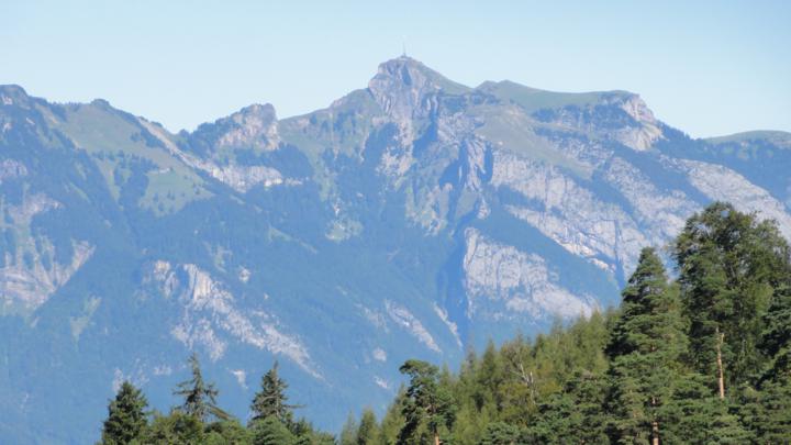Zoombild, vermutlich mit den "Drei Schwestern" (links aussen ist jedenfalls ein Gipfelkreuz zu erkennen):
