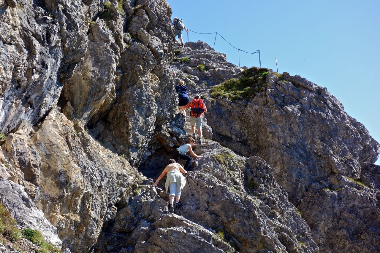 Ein wenig kraxeln muss sein, um auf den Chuegrat zu kommen.