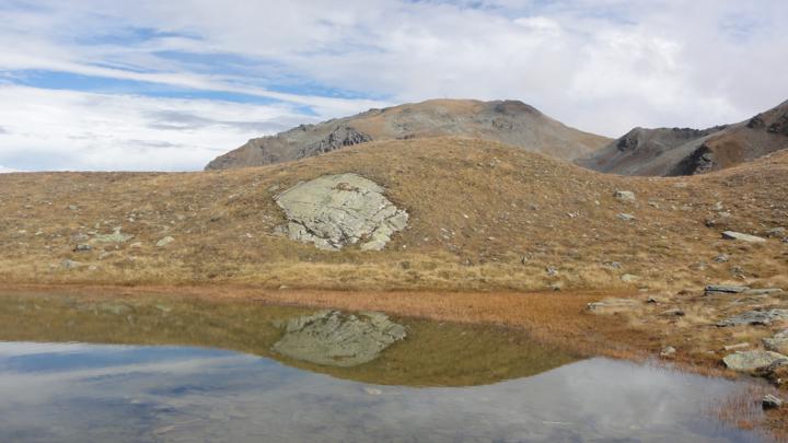 Drüben der Gibidumpass, wo im Sattel ein kleiner See das Suonenwasser sammelt, bevor es weiter in Richtung Visperterminen verteilt wird: