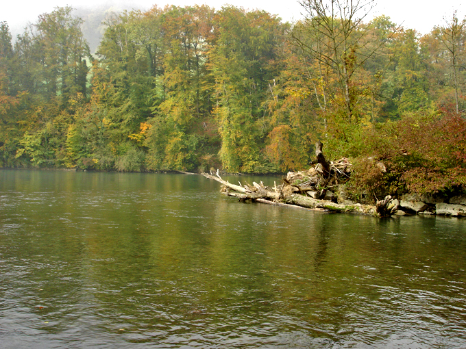 Bald erreichen wir im Schachen die Aare und trösten uns damit, dass auch das Wandern im Nebel....