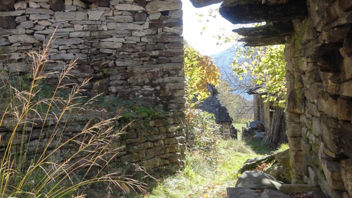 Auch drüben an den Talhängen des Valle di Mergoscia sind zahlreiche verlassene und zerfallende Siedlungen anzutreffen: