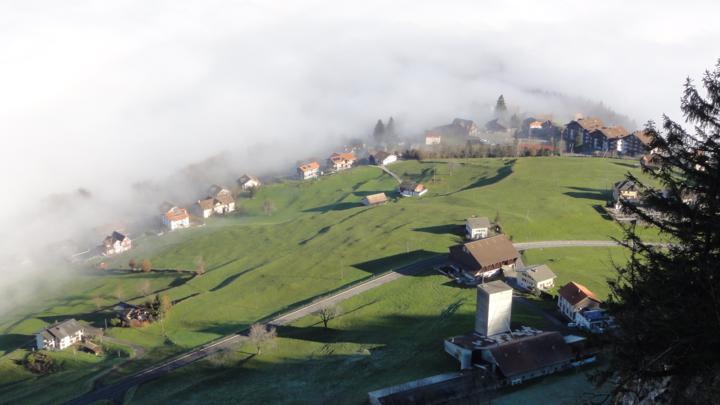 Vor zwei Tagen noch ist auch Seelisberg fast den ganzen Tag über im Nebel stecken geblieben. An solchen Tagen kann man um 09:30 mit dem Postauto beispielsweise nach Emmetten weiterfahren und dort mit der Seilbahn Emmetten-Niederbauen auf das 1600 Meter hoch gelegene Niederbauen gelangen.