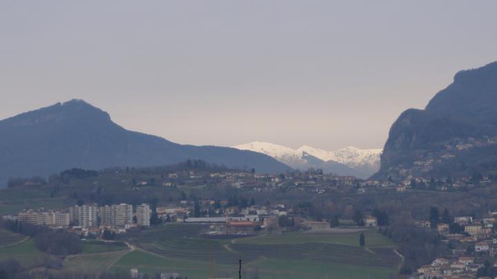 Aussichtsplattform auf dem Penz-Hügel mit Blick auf Chiasso. Leider ist der blaue Tessiner Himmel der vergangenen Tage seit heute von dichten Wolken überzogen und für morgen Freitag ist gar Schneefall angekündigt: