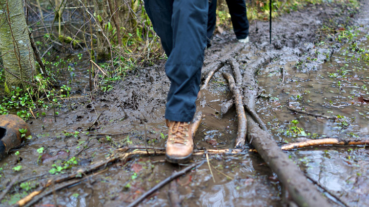...dessem abschüssigen Uferweg und durchqueren klaglos morastige Wegstücke, bevor wir...