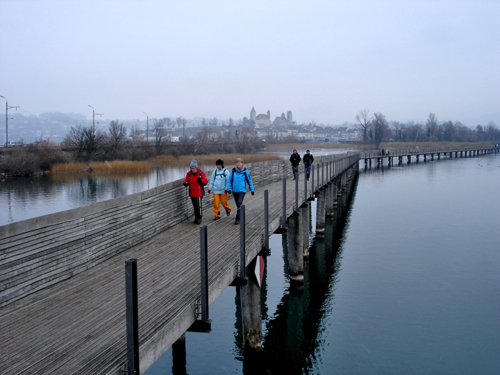 Der Rapperswiler Steg war fast exakt vor einem Jahr die letzte Wegstrecke unserer Megawanderung von Hedingen nach Rapperswil. Dieses erreichten wir in der Abenddämmerung eines schönen Wintertags. Hier eine Collage derselben Sujets, aufgenommen am 14.01.12 und 13.01.13: