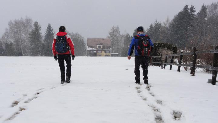 Durch Schnee stapfen ist bedeutend angenehmer als Einsinken im Dräck-äck-äck, der uns in tieferen Regionen stellenweise noch bevorsteht: