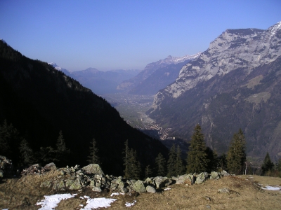 Da es noch früh am Nachmittag ist, wir haben ja für die Wanderung nicht viel Zeit gebraucht, da wir ja nicht in den Schneeschuhen laufen mussten, beschliessen wir, hinunter ins Tal nach Silenen zu laufen. Gemütlich wandern wir also den Berg hinunter, den recht steilen Weg über unzählige Kehren folgend ins Reusstal hinab. Auf der Brücke überqueren wir die Gotthardautobahn und die Reuss, wo wir nochmals einen letzten Blick auf den Bristen geniessen können