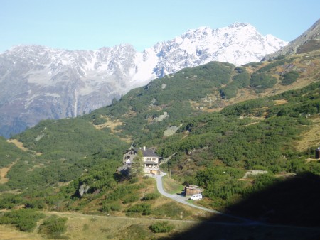 Beim Berghaus Vereina http://www.vs-wallis.ch/graubuend/huetverz/vereina.html hatten wir mal den Blick auf tief verschneite Berggipfel.