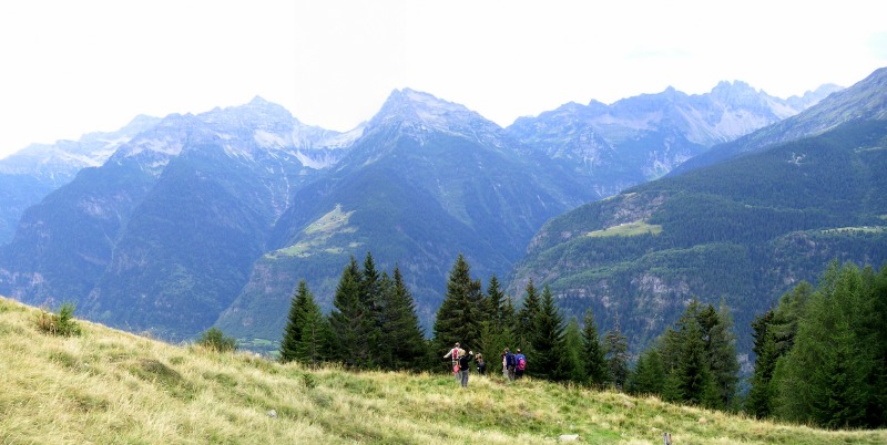 Es braucht viel Geduld die Sommervögel zu fotografieren, und so braucht, zumindest ein Teil der Wandergruppe viel Zeit für das Wegstück bis nach Singiasco. Da es für den Weg nach Sobrio knapp werden könnte, entscheiden wir uns für Abstieg nach Cavagnago, wo wir auch in den Bus nach Faido einsteigen können. Noch ein letzter Blick auf die Gipfel und Seitentäler gegenüber und ein kurzer Schwatz mit einem Einheimischen und los geht's.